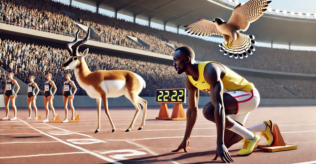 Ghepardul este cel mai rapid mamifer de pe Pământ, care, conform unor surse, poate atinge viteze de până la 121 km/h, deși poate menține acest ritm doar pe distanțe scurte. În ceea ce privește viteza umană, Usain Bolt deține recordul cu 45 km/h, însă, după cum poți vedea, aceasta nu este suficientă pentru a ajunge în top 10.
